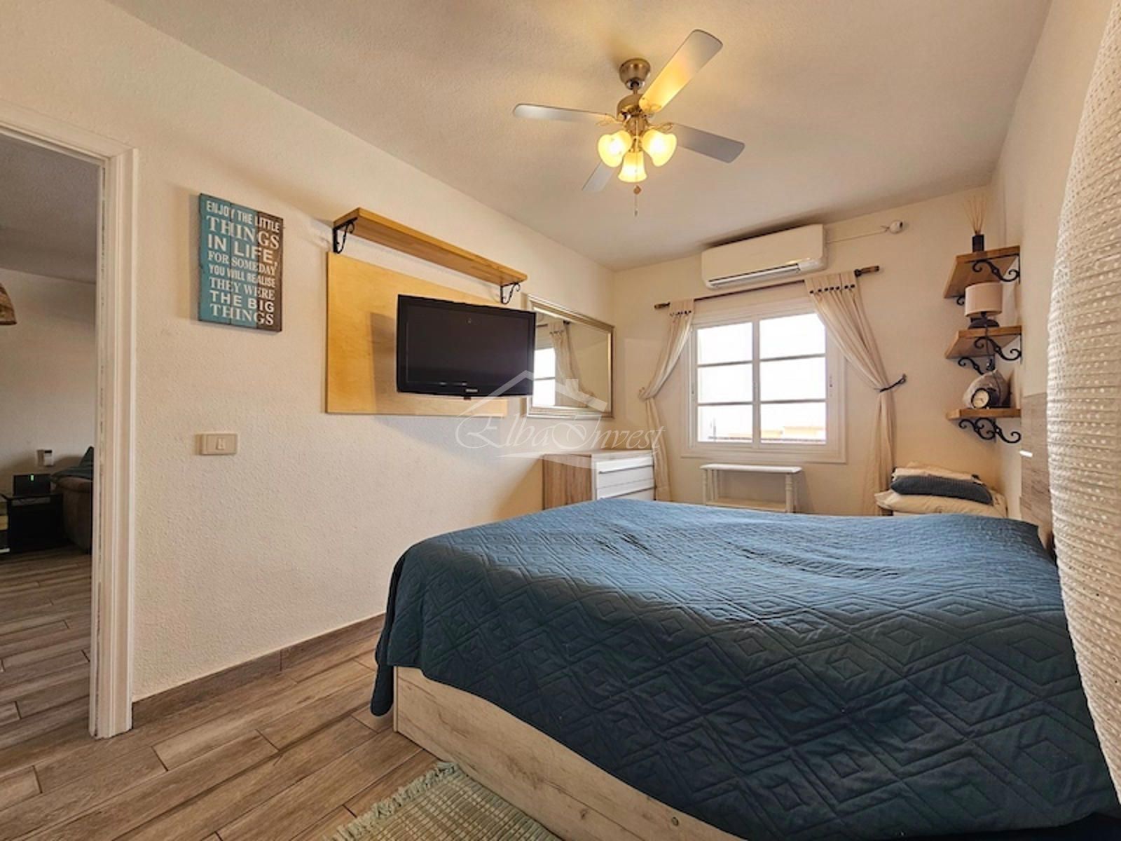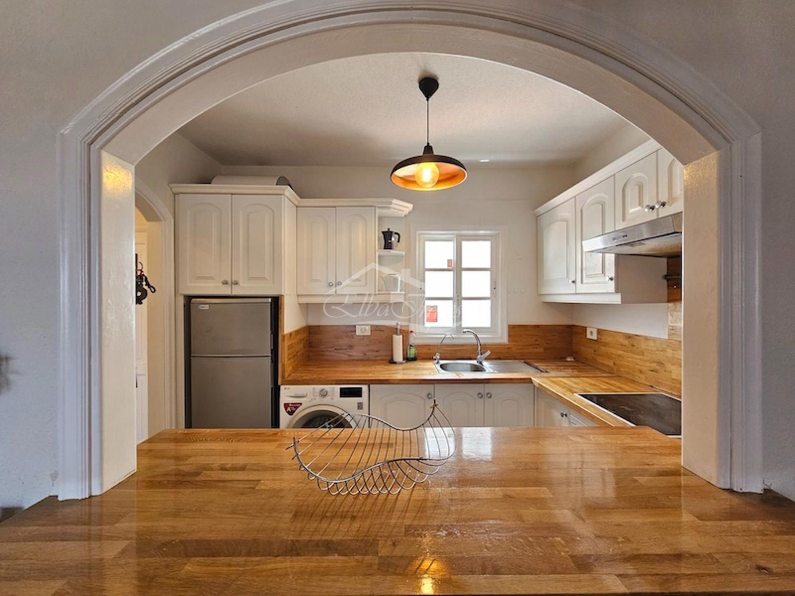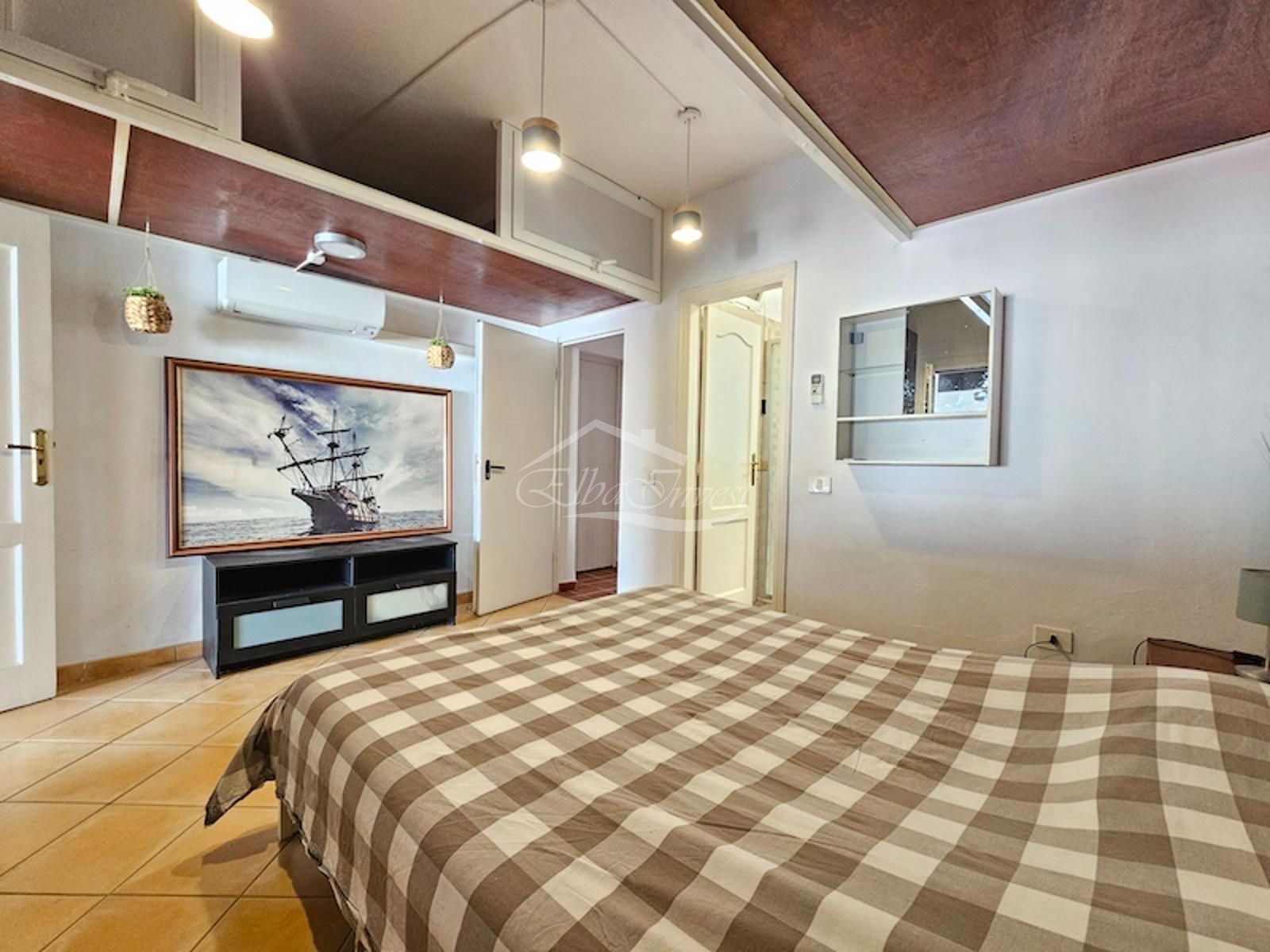La vivienda, completamente reformada, se vende totalmente amueblada y equipada, lista para entrar a vivir. Cuenta con 2 dormitorios y 2 baños. El dormitorio principal se encuentra en la planta principal, junto a un luminoso salón-comedor con aire acondicionado y acceso directo a una amplia terraza con vistas despejadas al mar, ideal para disfrutar del clima privilegiado de la isla durante todo el año. La cocina americana, moderna y funcional, está equipada con lavavajillas, frigorífico y lavadora.