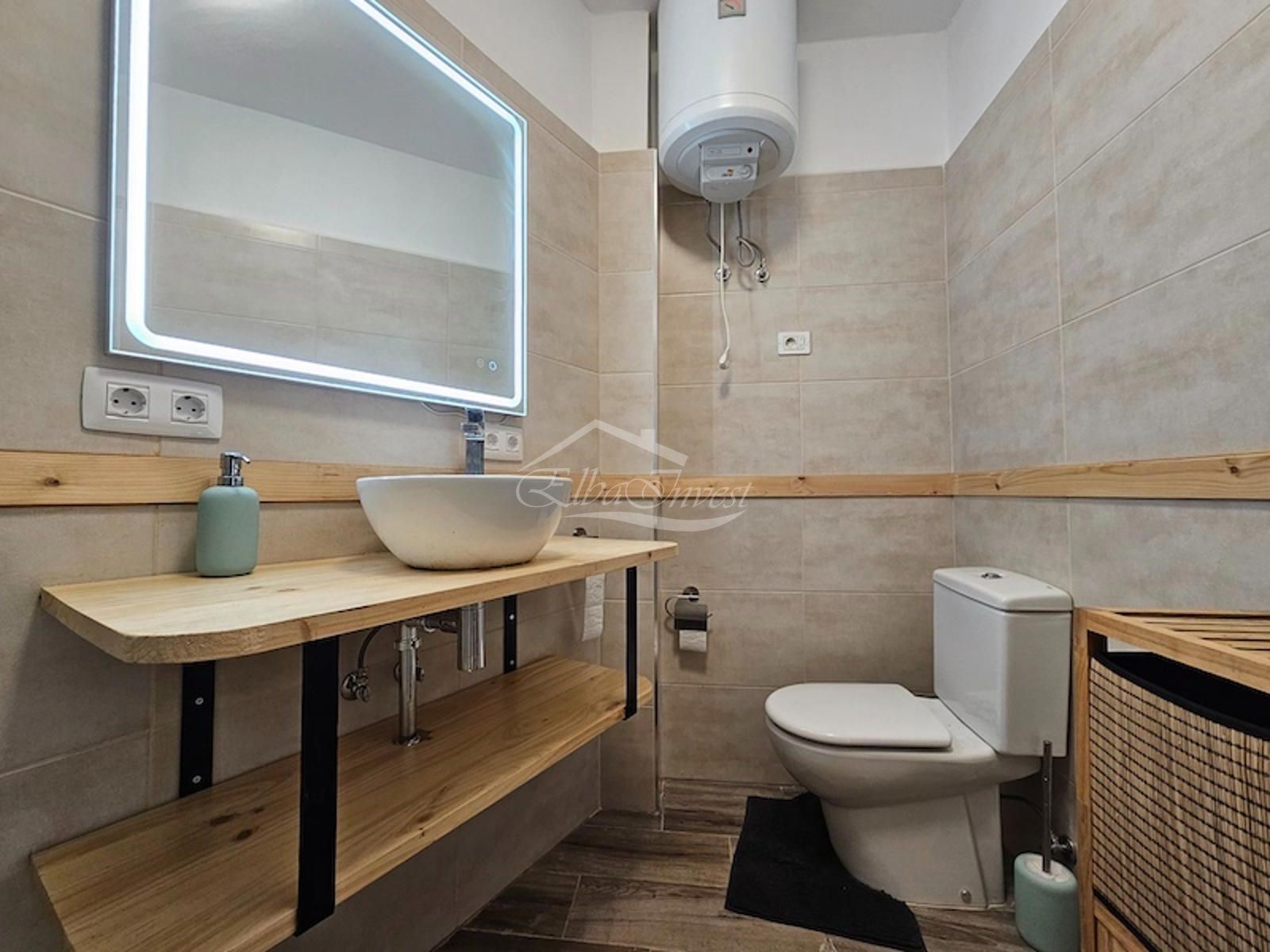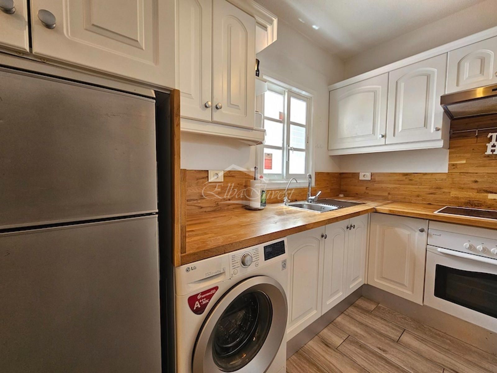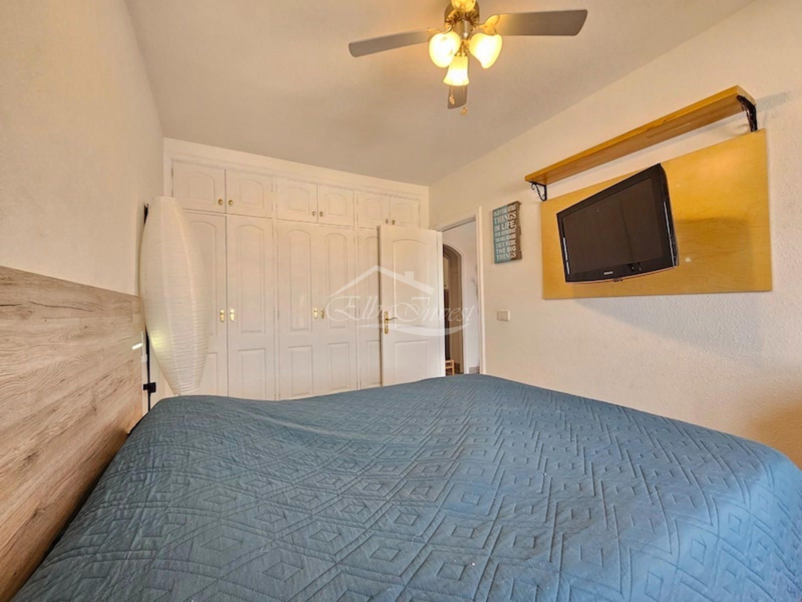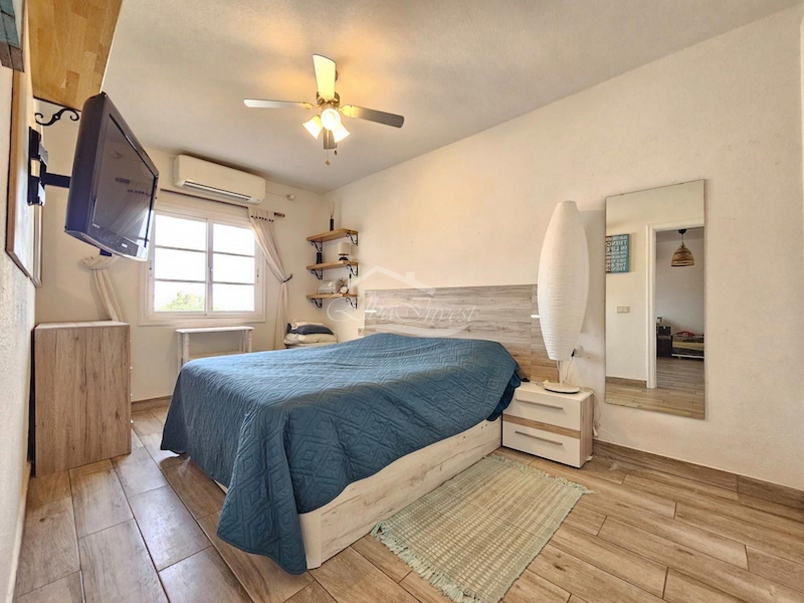 La vivienda, completamente reformada, se vende totalmente amueblada y equipada, lista para entrar a vivir. Cuenta con 2 dormitorios y 2 baños. El dormitorio principal se encuentra en la planta principal, junto a un luminoso salón-comedor con aire acondicionado y acceso directo a una amplia terraza con vistas despejadas al mar, ideal para disfrutar del clima privilegiado de la isla durante todo el año. La cocina americana, moderna y funcional, está equipada con lavavajillas, frigorífico y lavadora.