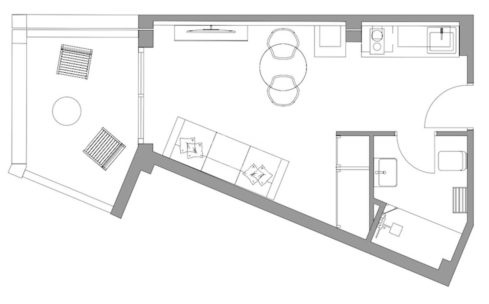Rodeado de impresionantes paisajes mediterráneos, este estudio combina a la perfección estilo, comodidad y versatilidad.