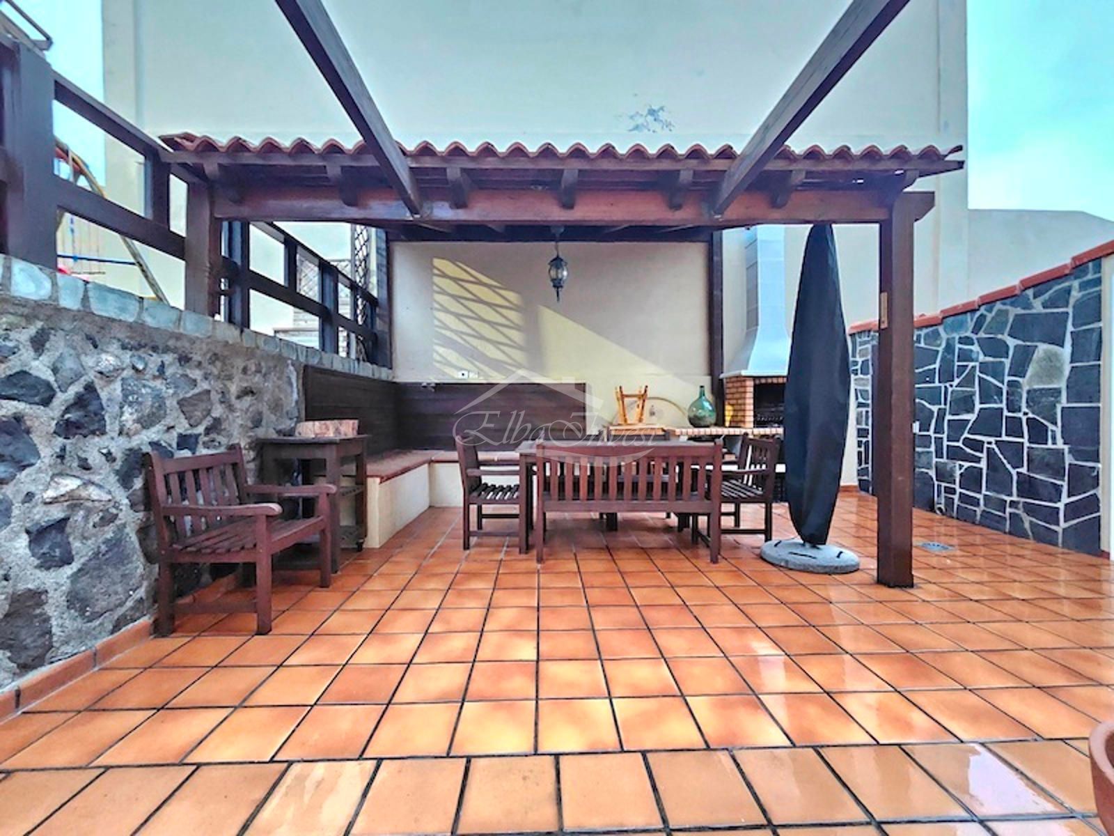 El exterior es uno de los espacios más disfrutables de la propiedad: cuenta con una amplia terraza con zona de barbacoa, perfecta para organizar reuniones familiares o disfrutar del clima privilegiado del sur de la isla durante todo el año.