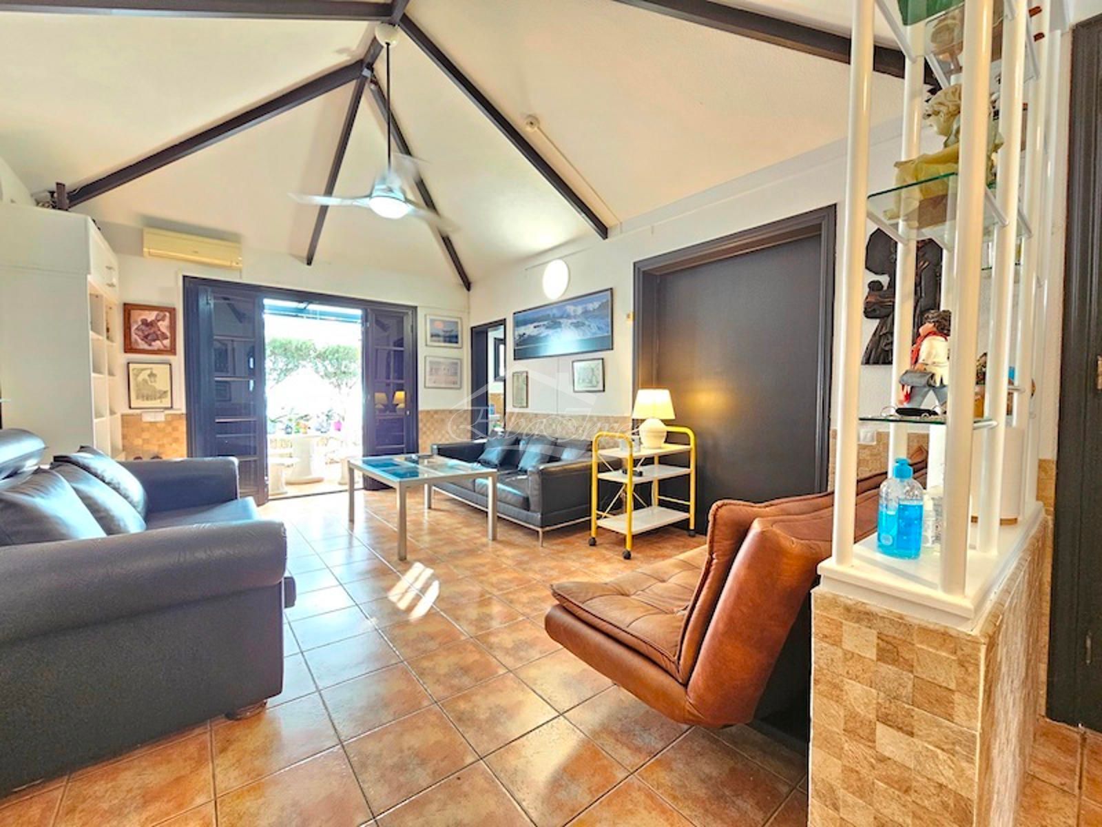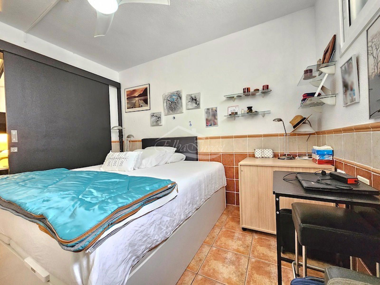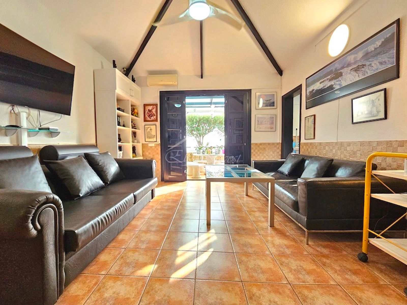 Se vende bonito chalet pareado en Playa de Las Américas, totalmente amueblado y listo para entrar a vivir. La vivienda cuenta con un dormitorio principal con cama de matrimonio y armario empotrado, además de una segunda habitación acondicionada actualmente como despacho/oficina. Dispone de un baño completo con ducha, un amplio salón-comedor y una cocina independiente, totalmente amueblada y equipada, con una práctica despensa.