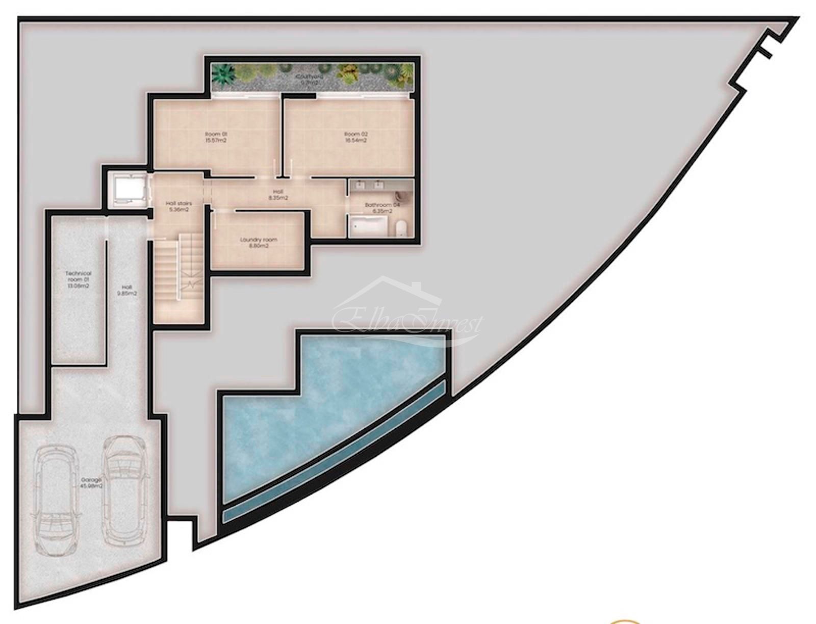 La planta inferior, con iluminación natural, ofrece estancias polivalentes, ideales como gimnasio, despacho, sala de cine o zona de ocio, además de un baño adicional, lavandería, sala técnica y espacios de almacenamiento.