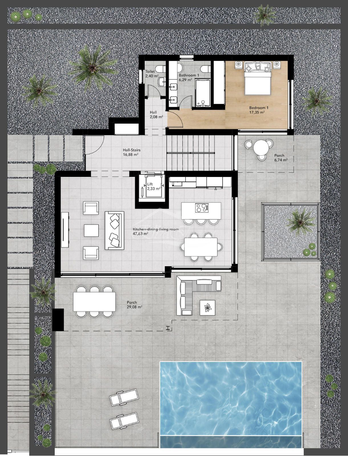 La villa se integra armoniosamente en el paisaje, con líneas arquitectónicas limpias, vegetación autóctona, vistas al mar y espacios diseñados para disfrutarse tanto en el interior como en el exterior durante todo el año. Ha sido concebida para maximizar la luz natural gracias a sus grandes ventanales y su orientación sur, que inundan cada estancia de luminosidad. Materiales nobles, tecnología integrada y una funcionalidad elegante definen cada detalle.