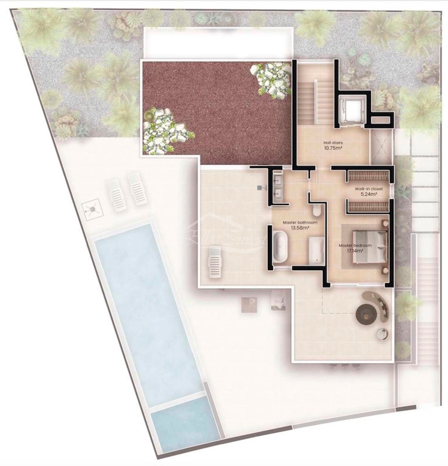Villa de lujo en venta en Costa Adeje, con 340 m2, 3 habitaciones y 4 baños, Piscina, 4 plazas de Garaje, Ascensor y Aire acondicionado.