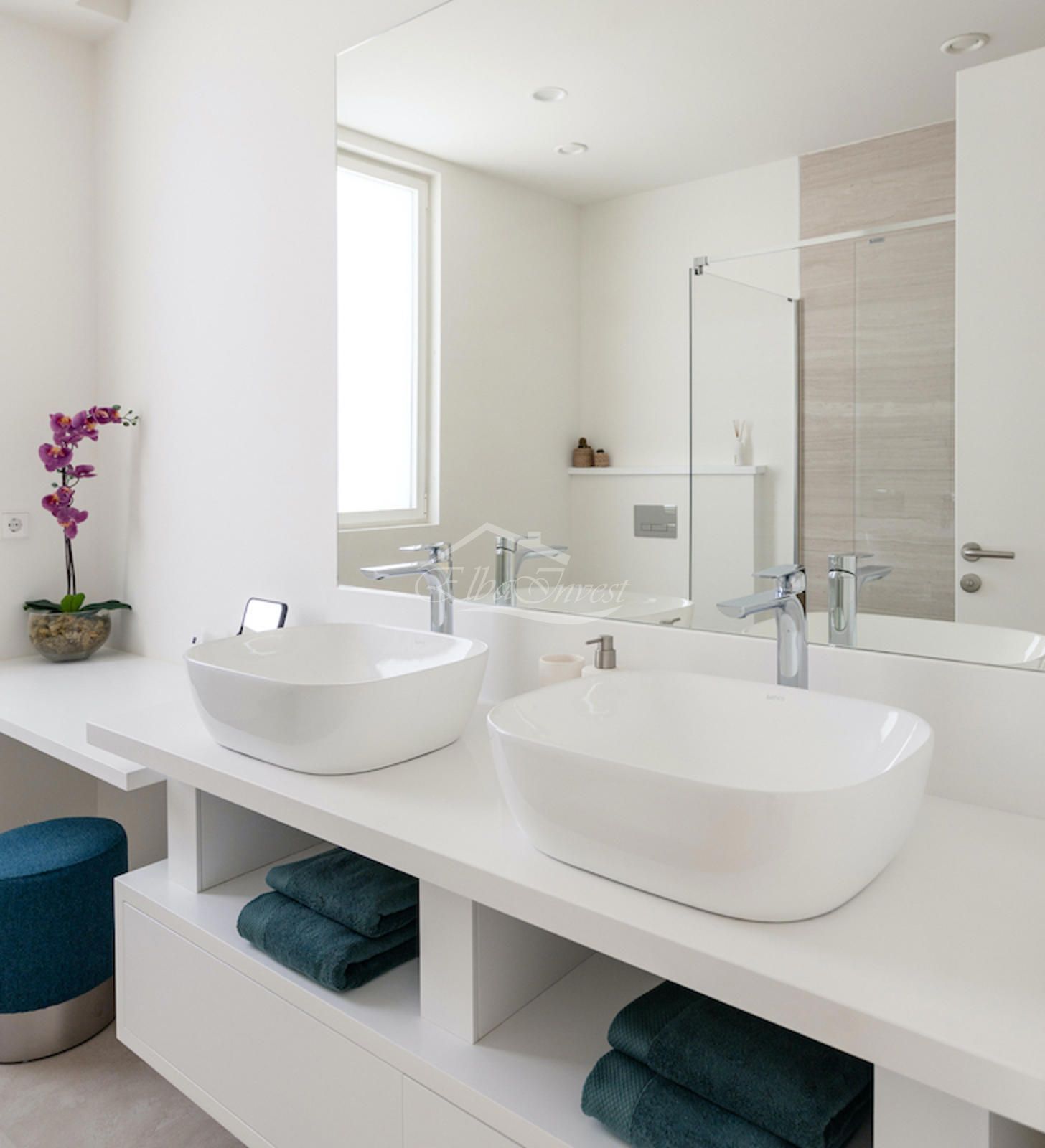 En el exterior, la villa destaca por su piscina infinita climatizada privada de 32 m², terrazas y porches perfectamente orientados para disfrutar del clima durante todo el año, así como por sus impresionantes vistas panorámicas al océano. La vivienda cuenta garaje privado cerrado para varios coches, ascensor privado y una distribución completamente accesible.