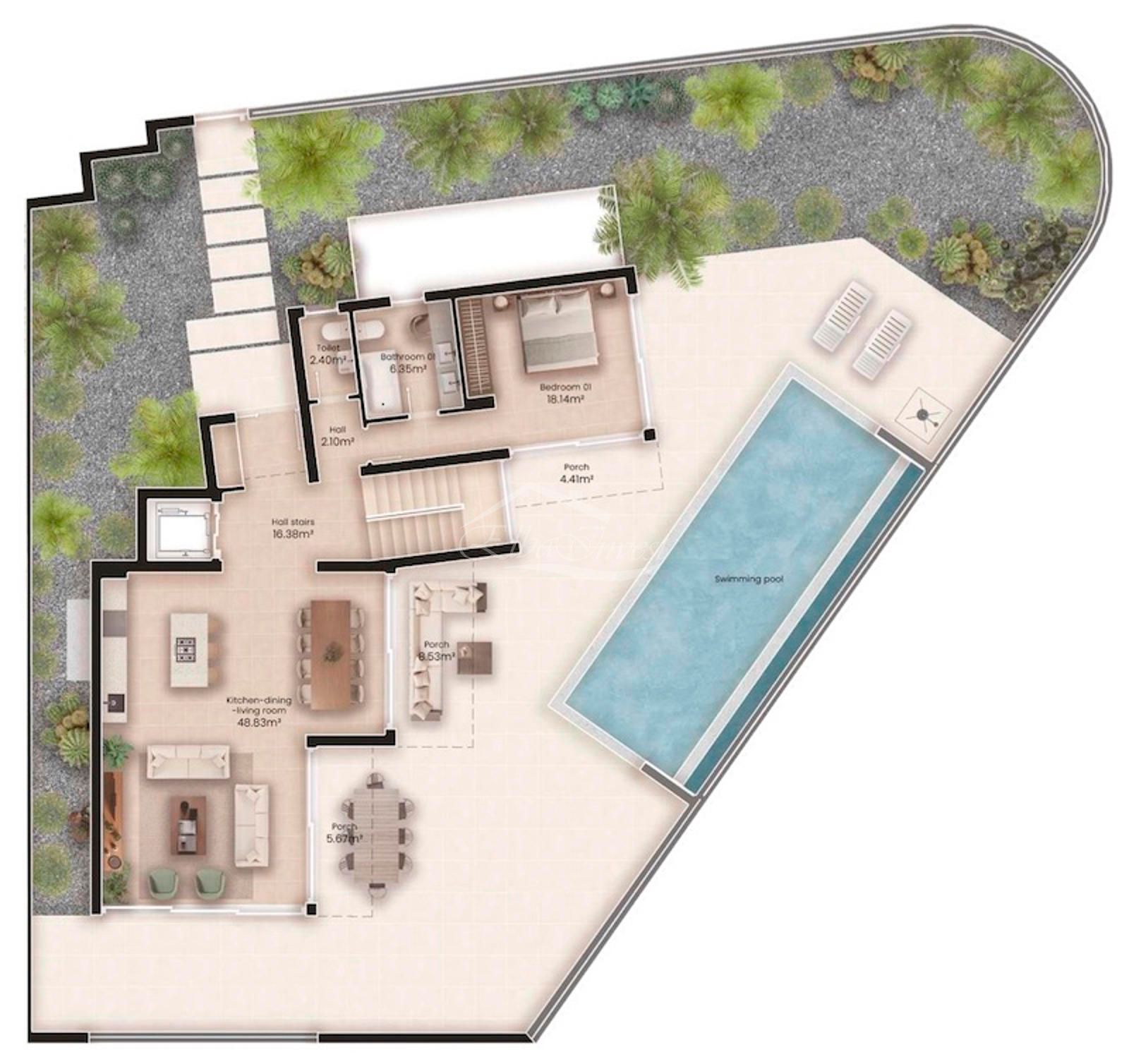 La villa se integra armoniosamente en el paisaje, con líneas arquitectónicas limpias, vegetación autóctona, vistas al mar y espacios diseñados para disfrutarse tanto en el interior como en el exterior durante todo el año. Ha sido concebida para maximizar la luz natural gracias a sus grandes ventanales y su orientación sur, que inundan cada estancia de luminosidad. Materiales nobles, tecnología integrada y una funcionalidad elegante definen cada detalle.
