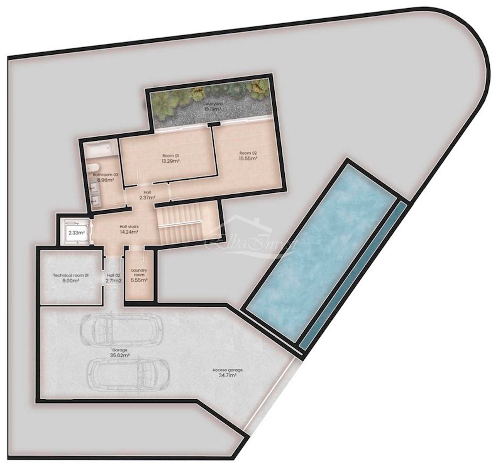 La planta inferior, con iluminación natural, ofrece estancias polivalentes, ideales como gimnasio, despacho, sala de cine o zona de ocio, además de un baño adicional, lavandería, sala técnica y espacios de almacenamiento.