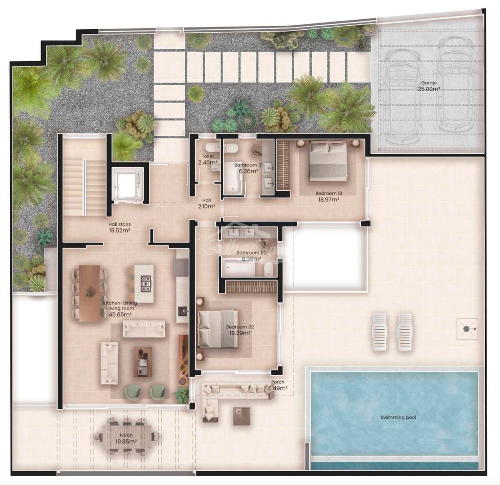Situada a pocos minutos de la playa y de las principales zonas comerciales y de ocio del sur de la isla, la vivienda ofrece un equilibrio perfecto entre tranquilidad, privacidad y cercanía a todos los servicios.
