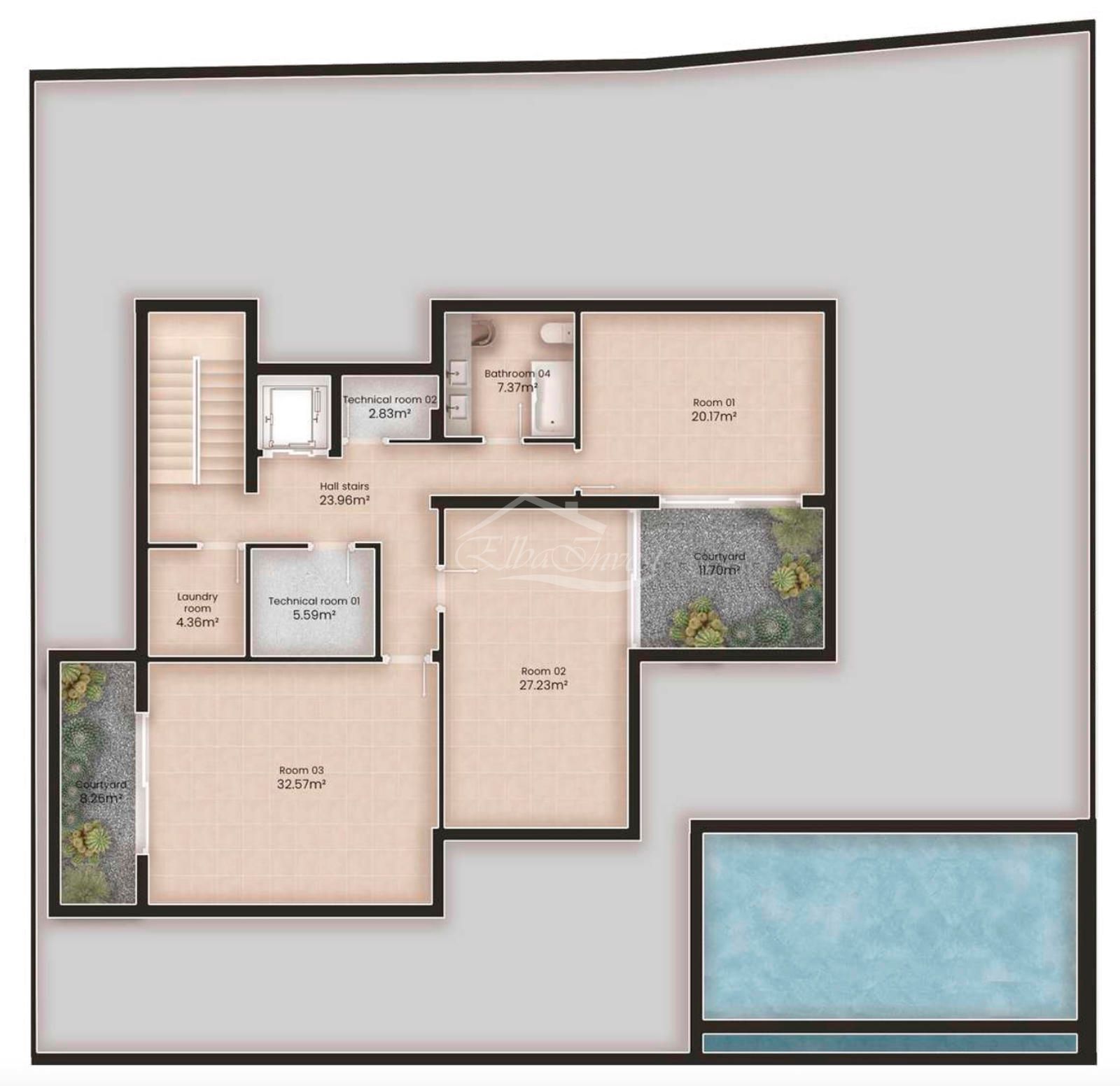 La planta inferior, con iluminación natural, ofrece estancias polivalentes, ideales como gimnasio, despacho, sala de cine o zona de ocio, además de un baño adicional, lavandería, sala técnica y espacios de almacenamiento.