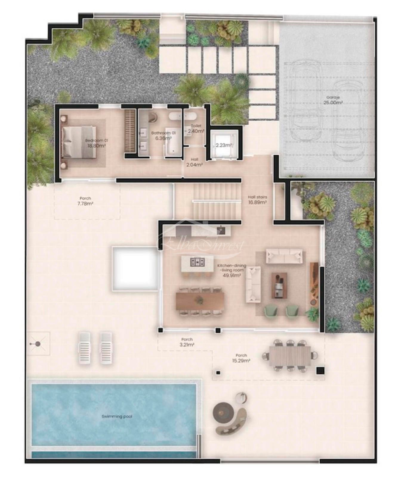 La villa se integra armoniosamente en el paisaje, con líneas arquitectónicas limpias, vegetación autóctona, vistas al mar y espacios diseñados para disfrutarse tanto en el interior como en el exterior durante todo el año. Ha sido concebida para maximizar la luz natural gracias a sus grandes ventanales y su orientación sur, que inundan cada estancia de luminosidad. Materiales nobles, tecnología integrada y una funcionalidad elegante definen cada detalle.