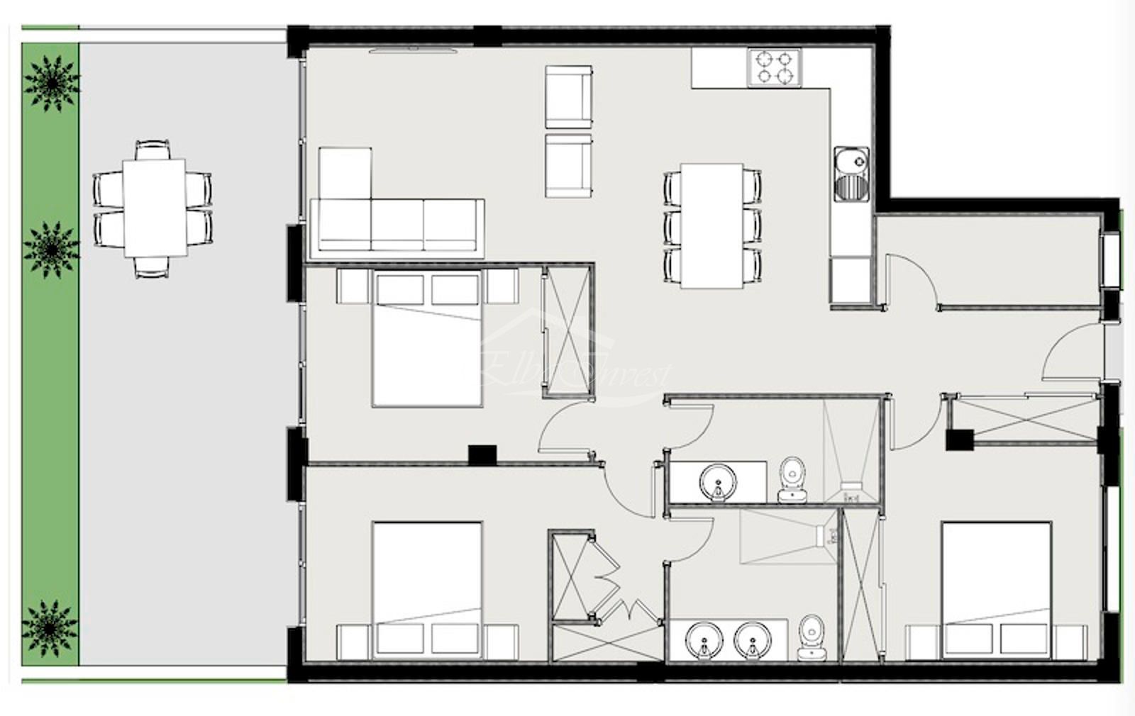 Esta magnífica vivienda ofrece una distribución moderna y funcional, con un amplio y luminoso salón comedor integrado a una cocina de concepto abierto, 3 dormitorios (uno de ellos con baño en suite), 2 baños completos, una generosa terraza/jardín, perfecta para disfrutar del aire libre durante todo el año.