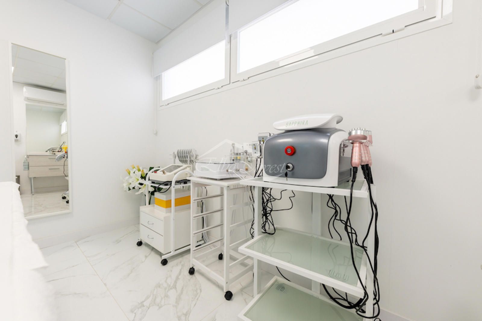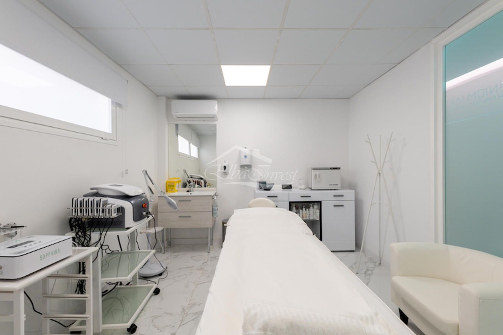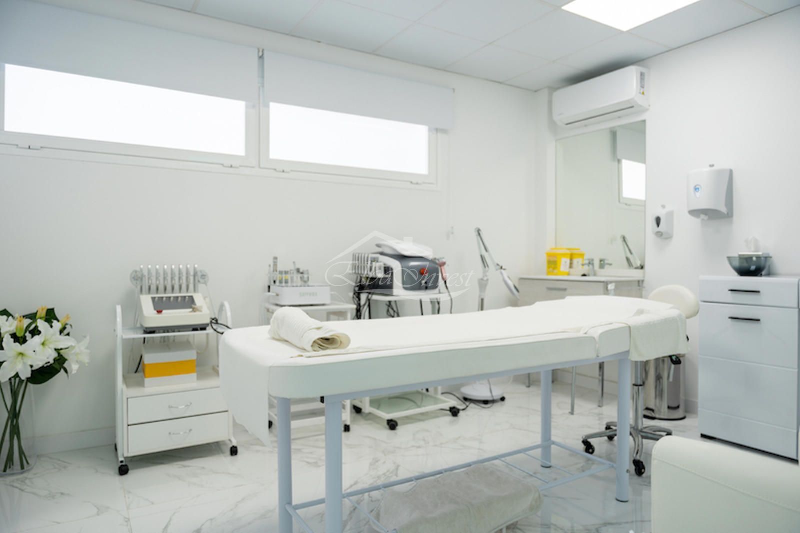 El local, con una superficie superior a 150 m², presenta una imagen moderna y premium. Dispone de una elegante recepción con sala de espera, cinco gabinetes especializados (consultas estéticas, médica y de bienestar), office para el personal y baños adaptados. Está equipado con aparatología de última generación para tratamientos faciales, corporales y capilares, incluyendo sistemas de láser, radiofrecuencia, criolipólisis y tecnología avanzada para el tratamiento de la alopecia.